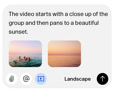 To generate a video from a prompt simply describe your idea through text. You can be as brief or descriptive as you want, but the more detail you provide the closer the result will be to your creative vision.