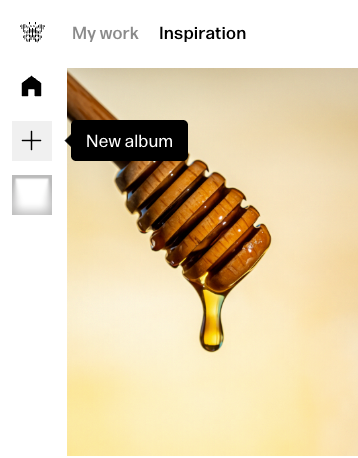 You can also create a new album by clicking + at the top of the left hand menu. Clicking + will take you directly inside your new album to the chat interface, where you can start to ideate and create images or video.