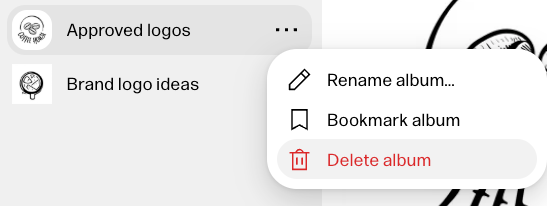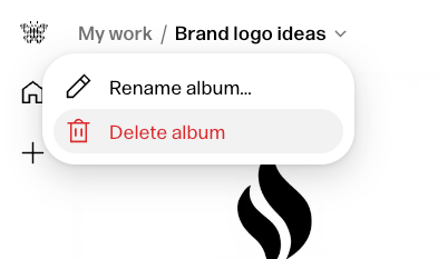 If you’re in an album you want to delete, simply click the album name in the top left and select Delete album from the drop down. If you’re on the My work tab, you can delete an album by clicking … and selecting Delete album.