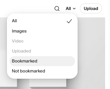 To find all your bookmarked images within an album, click the menu in the top right and select Bookmarked from the drop down.